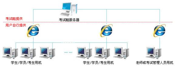 考試酷系統(tǒng)屬于純B/S架構,無需安裝任何客戶端,學生用戶通過瀏覽器登錄系統(tǒng),參加考試、完成作業(yè)或練習、查看參考答案和試題解析、查看考試成績等;教師用戶通過瀏覽器登錄系統(tǒng),進行學生管理、班級管理、完成試卷錄入/導入/上傳、組織班級統(tǒng)一考試、集中處理閱卷和成績管理等。