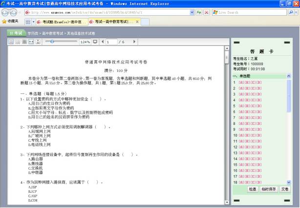 性能與可靠性: 1、支持考試過程中手動和服務器自動臨時保存答卷,電腦一旦出現(xiàn)故障允許用戶換機繼續(xù)考試; 2、支持考試過程中網絡和服務器出現(xiàn)故障時用戶繼續(xù)答題并在環(huán)境恢復時提交答卷; 3、交卷時如遇到網絡或服務器繁忙,可以返回交卷前狀態(tài),等到網絡暢通時可補交答卷。 |